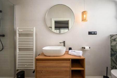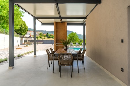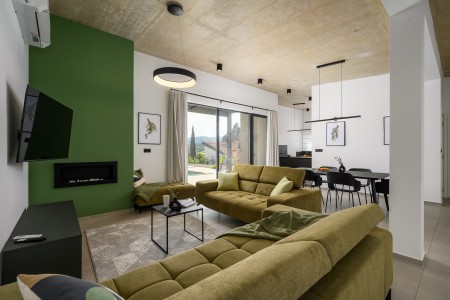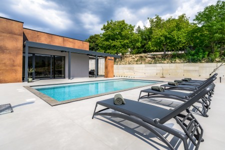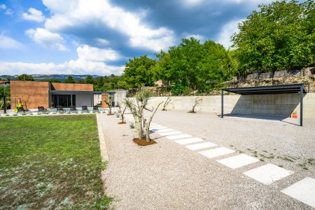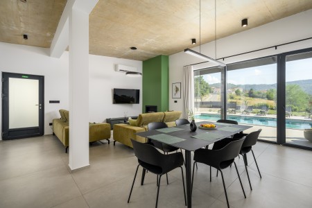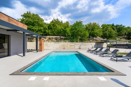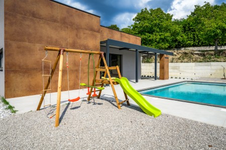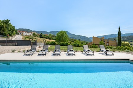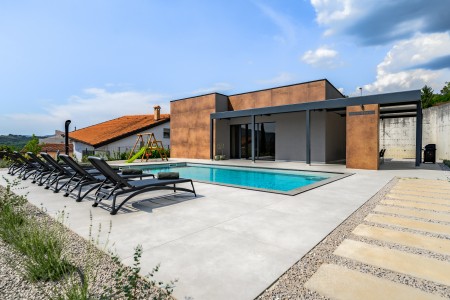 Ova samostojeća villa smještena je u Buzetu, na sjeveru Istre, na privatnoj parceli površine 1400 m². Šarmantni stari grad uzdiže se na brežuljku i očarava posjetitelje svojim srednjovjekovnim ugođajem, uskim kamenim uličicama i panoramskim pogledom na zelenilo okolnog krajolika. Regija je posebno poznata po tartufima, i crnim i bijelim, koji imaju važnu ulogu u lokalnoj kuhinji. U jesen grad postaje odredište gurmana iz cijele Europe zahvaljujući poznatom Festivalu tartufa. No, Buzet nudi mnogo više od gastronomskih užitaka. Na samo nekoliko minuta vožnje nalazi se uzletište za paragliding „Raspadalica“, popularna točka polijetanja s veličanstvenim pogledom na dolinu rijeke Mirne – posebno iskustvo za sve željne doživljaja. Ljubitelji enduro vožnje također će doći na svoje: brojni makadamski putevi i šumske staze vode kroz raznoliki krajolik –– idealno za istraživanje Istre na dva kotača. Vlasnici kuće i sami su enduro vozači te će Vam rado dati savjete o najboljim rutama u okolici. Ako poželite otići do mora, obalni gradić Novigrad udaljen je oko 40 minuta vožnje. Trgovina se nalazi na otprilike 400 metara od kuće, dok je najbliži restoran udaljen oko 1,7 kilometara. U vanjskom dijelu očekuje Vas privatni bazen (9 x 5 m) s ležaljkama i vanjskim tušem, kao i dječje igralište s ljuljačkom, toboganom, klackalicom i penjalicom. Unutrašnjost kuće ukusno je uređena, nudi tri spavaće sobe i može ugostiti do 6 gostiju.