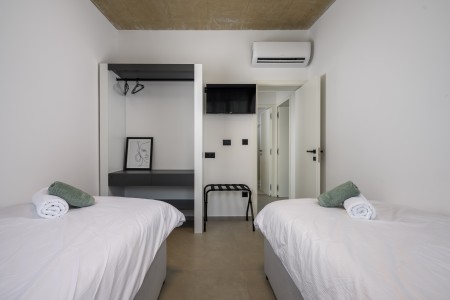 Kuća za 6 osoba: ca. 140 m², prizemnica. Villa se sastoji od open-space prostora koji obuhvaća dnevni boravak s blagovaonicom i potpuno opremljenom kuhinjom, klima uređaj i direktan izlaz na terasu uz bazen. Na raspolaganju su tri spavaće sobe – dvije s bračnim krevetom i jedna s dva odvojena kreveta za po jednu osobu. Sve spavaće sobe opremljene su klima uređajem i TV-om. Gostima su na raspolaganju i tri kupaonice (tuš/WC).