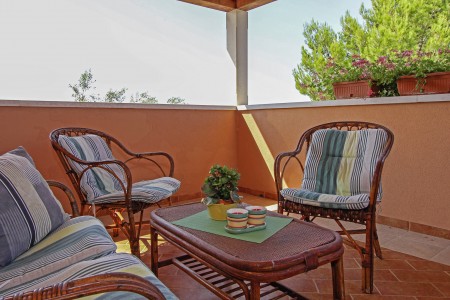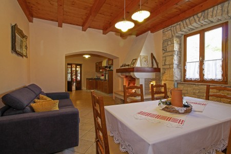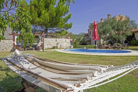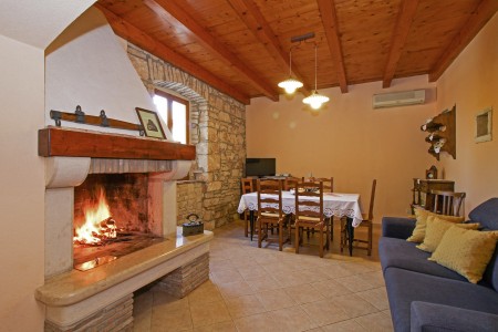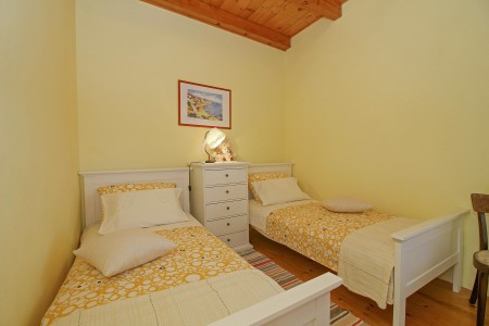 Kuća za 4-6 osoba: Kuća površine ca. 110 m² podijeljena na dva kata. U prizemlju kuhinja s dnevnim boravkom u kojem je i kauč na razvlačenje za dvije osobe (180 x 200 cm), kamin, mala blagovaona i kupaona s hidromasažnom kadom. Na prvom katu dvije dvokrevetne sobe – jedna s bračnim krevetom, a druga s dva kreveta za po jednu osobu – i terasa (20 m²) s pogledom na Brijune. Sve prostorije su klimatizirane.