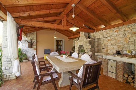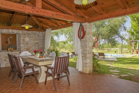 Kuća Šalvela se nalazi u istoimenom mjestu i okružena je maslinikom i livadama. S terase se pruža prekrasan pogled na obalu i more. Velika parcela, na kojoj se nalazi i voćnjak, nudi mnoge mogućnosti za odmor, a pored nje prolazi označena staza za šetnje i vožnje biciklom. Kući pripada i velika ljetna terasa koja poziva na kuhanje i roštiljanje. Osim toga, tu je i privatni bazen (8 x 3,5 m, dubina 1,30 m) i natkrivena terasa s udobnom sjedećom garniturom. Vaši domaćini, koji žive u nedalekom Vodnjanu, će Vam vrlo rado reći gdje se nalaze najljepše plaže.