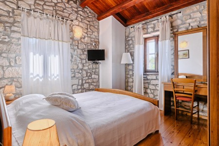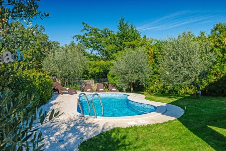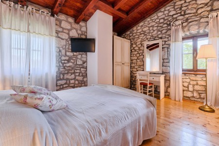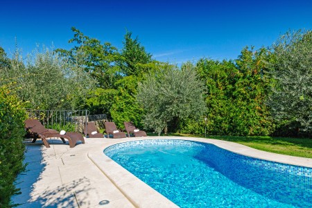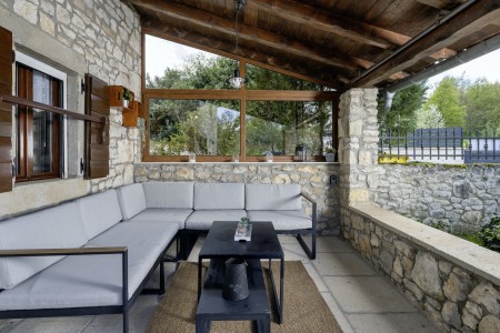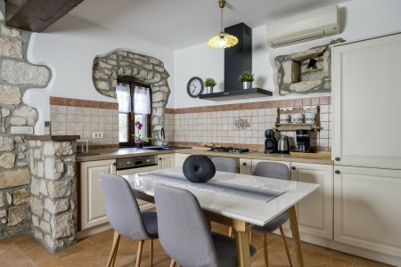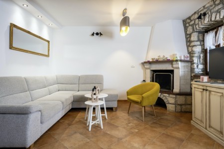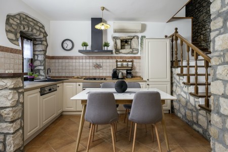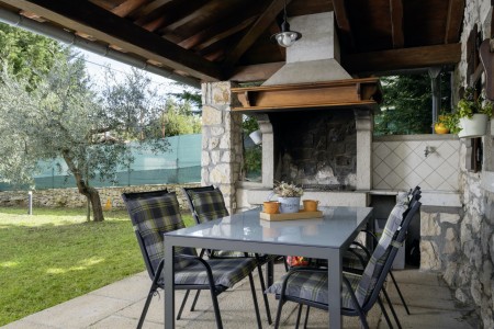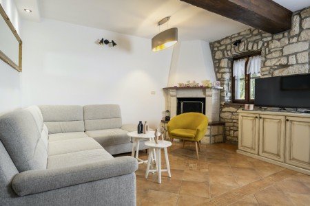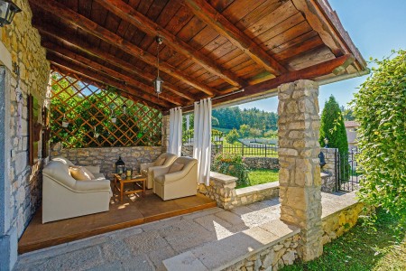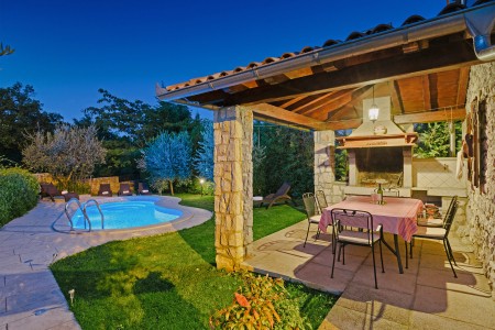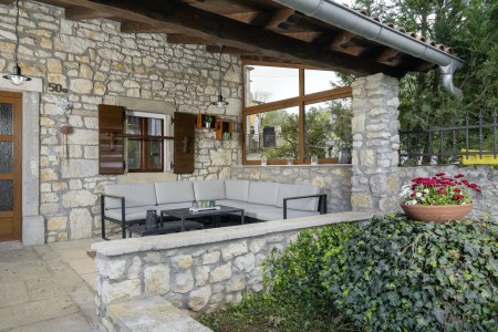 Na rubu sela Kršan nalazi se ova udobna kamena kuća s tri spavaće sobe i lijepo uređenim dvorištem u kojem se nalazi privatni bazen (6 x 4 m). Prednost ove kuće je ta što se nalazi u zelenilu koje pruža potpuni mir i privatnost, a do mora i najbližih obalnih mjesta je udaljena samo nekoliko minuta vožnje autom. Osim što je kuća uređena za ugodan boravak, okoliš je također lijepo njegovan, a gostima stoje na raspolaganju natkrivena terasa s roštiljem i bazen s ležaljkama.