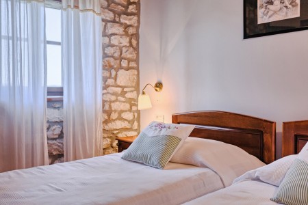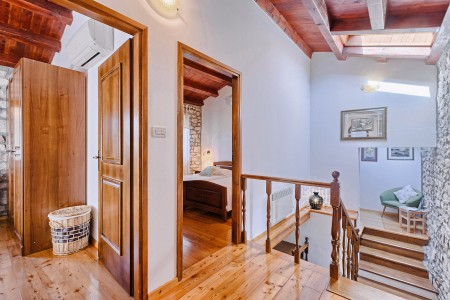 Kuća za 6 osoba: Kuća površine 110 m² podijeljena na dva kata. U prizemlju se nalazi otvorena kuhinja s blagovaonom, klimatizirani dnevni boravak s kaminom, vinoteka i manja kupaona. Na prvom katu su dvije klimatizirane dvokrevetne sobe, jedna klimatizirana spavaća soba s dva odvojena kreveta i dvije kupaone (tuš/WC).