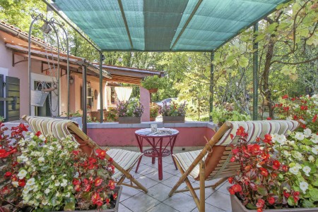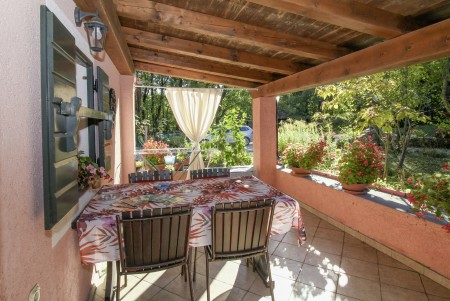 Mala prizemna kućica nalazi se na velikoj i uređenoj parceli od preko 2000 m². Na istoj parceli se nalazi kuća u kojoj žive domaćini te još jedna slična kućica za odmor za 2-4 osobe. Okružena je uređenim zelenilom i prirodnim parkom u kojem ima mnogo biljaka i drveća koja pružaju puno hlada. Svatko vrlo brzo pronađe svoje mjesto za odmor, a mogućnosti ima mnogo – osim u zelenom vrtu pod stablima to može biti viseća ležaljka na natkrivenoj terasi ili možda klupice kod vanjskog roštilja. Osim svega navedenoga, na raspolaganju stoji i montažni bazen (promjera 3,66 m i dubine 0,76 m) u kojem se možete osvježiti. U blizini naći ćete razne staze za pješačenje i planinarenje.