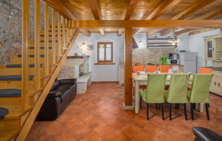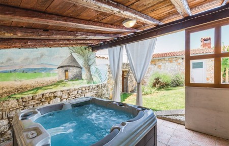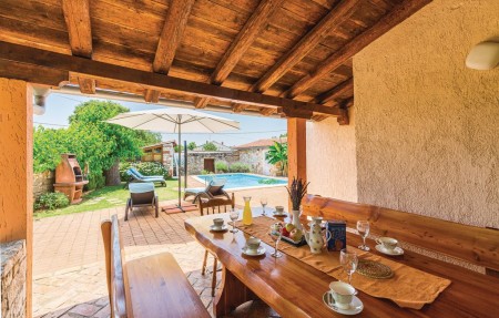 Kuća izgrađena u tipičnom istarskom stilu smještena je u selu Matohanci koje se nalazi nedaleko poznatog grada Rovinja. Uz potpuno ograđeno dvorište, na raspolaganju Vam je i privatni bazen (7,5 x 4 m) s terasom za sunčanje i ležaljkama, kao i roštilj. Natkrivena terasa ispred ulaza u kuću, opremljena stolom i klupama, pruža ugodan hlad tijekom toplih ljetnih dana i poziva na uživanje u dugim ljetnim večerima. Poznati gradić Rovinj nudi brojne mogućnosti za kupanje i vodene sportove, a do njega možete stići za otprilike 15 minuta vožnje automobilom. Stari grad, sa svojim uskim uličicama, slastičarnicama i crkvom sv. Eufemije smještenom na brežuljku, svakako vrijedi posjetiti. Najbliži restoran udaljen je otprilike 4 km, a trgovinu također možete pronaći na otprilike istoj udaljenosti. Sve ostalo za svakodnevne potrebe nalazi se u 11 km udaljenom Rovinju.