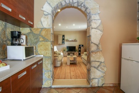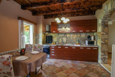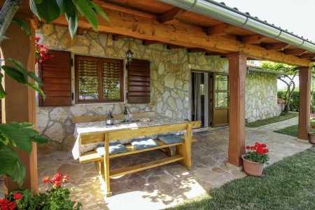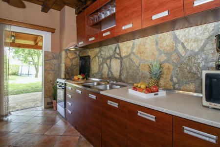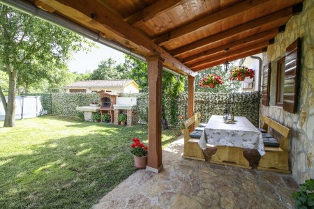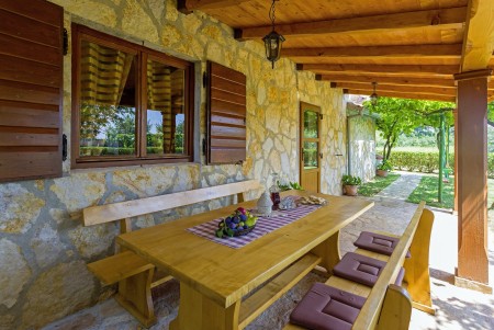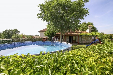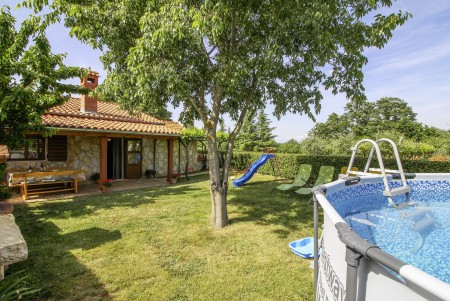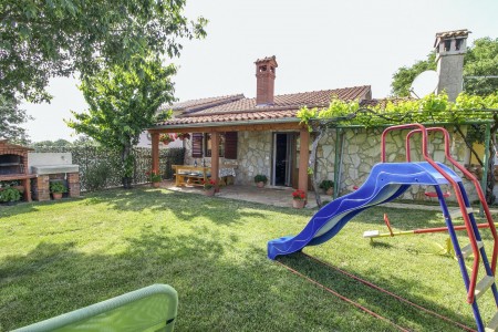 Ova samostojeća kuća s tri spavaće sobe nalazi se u malom selu Kmeti u središnjoj Istri. Ona je u istom dvorištu gdje je i kuća vaših domaćina, a sve je vrlo pitomo i okruženo bezbrojnim voćkama kao i velikim povrtnjakom. Ovdje imate savršene uvjete za miran obiteljski odmor na selu. Posebno će se odmoru na ovom imanju veseliti djeca. Osim što imaju puno prostora za igru i ljuljačke, klackalice i tobogan, ovdje će imati prilike upoznati i domaće životinje – pse, mačke, kokoške i golubove. Vrlo ljubazni i susretljivi domaćini opskrbiti će Vas svime što tu raste, ovisno o sezoni tj. vremenu kada tu boravite te Vam stoje na raspolaganju ako Vam nešto zatreba.