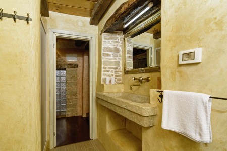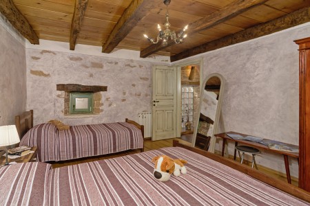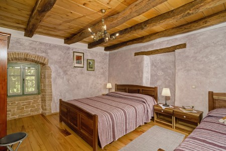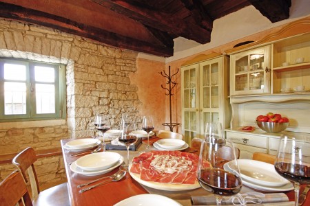 Trošti je malo mjesto, samo nekoliko stotina metara udaljeno od geografskog centra Istre, idealno kao polazište za pješačenja i vožnje biciklom. I istočne i zapadne plaže su na pola sata vožnje autom. Samostojeća kuća Erisa je stara oko 300 godina i time je najstarija kuća u selu. Vlasnik kuće je preko 10 godina radio na restauraciji i modernizaciji ove kuće. Prilagodio ju je suvremenom životu, ali je svejedno pazio na to da koristi prirodne i autohtone materijale kako bi kuća zadržala tradicionalni karakter. Iako je okućnica dosta mala, imanju pripada nekoliko hektara livada, polja i šuma na kojima se možete slobodno kretati. Vaši domaćini, koji žive u susjednoj kući, se bave poljoprivredom za vlastite potrebe.