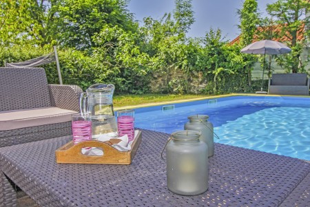 Ugodna kuća za odmor za 4-5 osoba, velika okućnica (1200 m²) s privatnim bazenom i livadom za igru