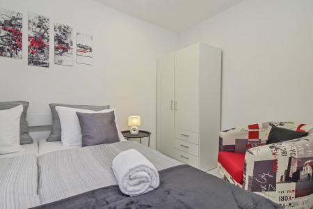 krevetom i jedna sa tri kreveta za jednu osobu. Klima uređaj se nalazi