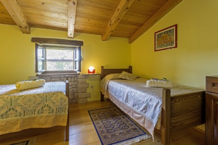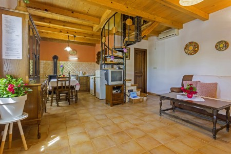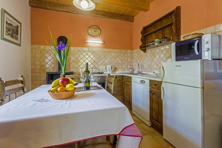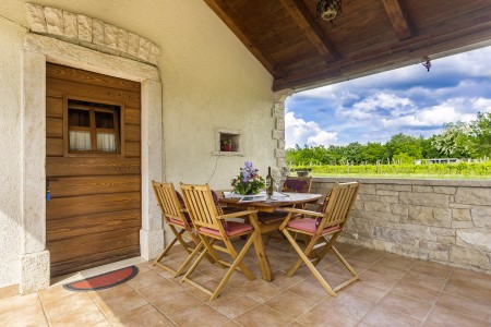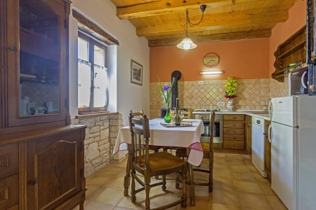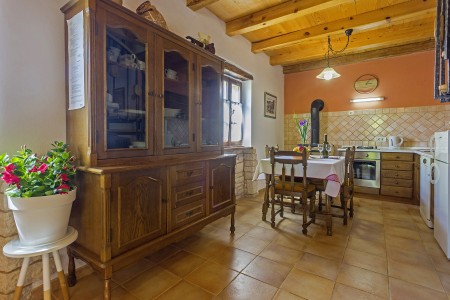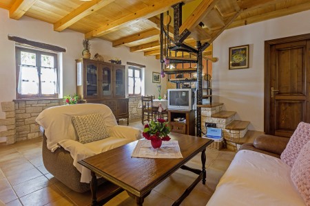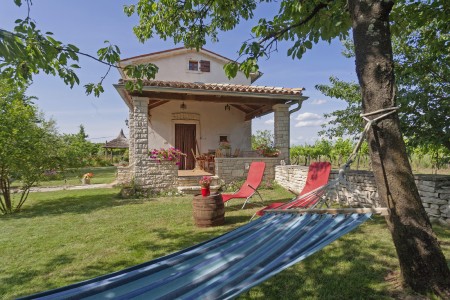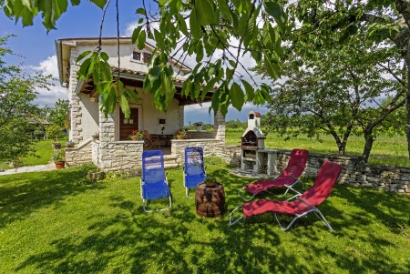 Ova kuća se nalazi u centralnoj Istri i savršeno je polazište za odlaske na pješačenja i planinarenja. Vaši domaćini žive na istoj parceli i vrlo rado će Vam pokazati sve „tajne“ puteljke i staze. Oni imaju i domaće životinje – pse, mačke i kokoške. Kuća je okružena livadama i voćnjacima, a na ulazu ima natkrivenu terasu.