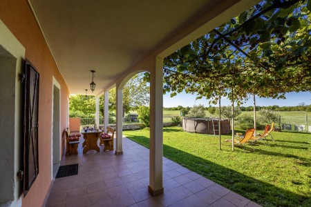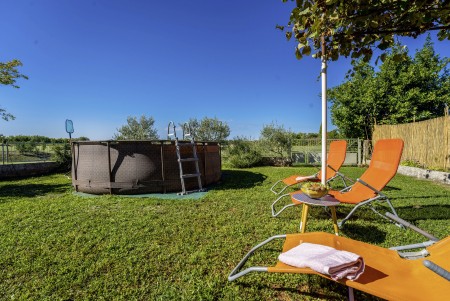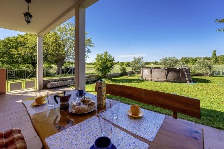 Ova održavana i jednostavno namještena kuća za odmor smještena je u malom i vrlo mirnom mjestu Stancija Palion, oko 4 km od Barbana. Osim udobno namještenog interijera, pronaći ćete privatni vrt s montažnim bazenom i pogledom na okolni krajolik. Kući pripada dodatnih 17.000 m² površine s livadama i poljima, na kojima se možete slobodno kretati i uživati u prirodi. Smještena u unutrašnjosti Istre, kuća je idealna polazna točka za uzbudljive izlete, jer su poznata obalna mjesta poput Rovinja, Poreča i Pule lako dostupna automobilom. Najbliža plaža udaljena je samo 8 km od kuće i nalazi se u uvali Blaž. Sve što Vam je potrebno za svakodnevne potrebe pronaći ćete u obližnjem gradiću Barban (4 km).