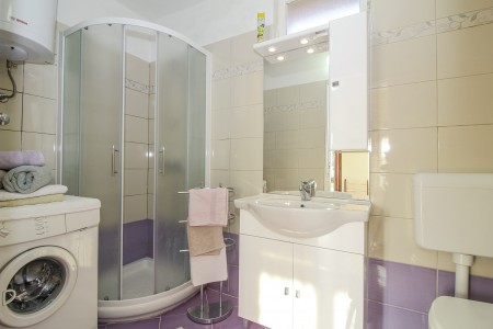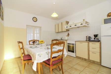 Kuća za 4-5 osoba: ca. 95 m², na dvije etaže. U prizemlju se nalazi kuhinja s blagovaonicom, dnevni boravak s kaučem na razvlačenje i klima uređajem, te kupaonica (tuš/WC). Strmije stepenice vode na prvi kat, gdje se nalaze dvije spavaće sobe s velikim bračnim krevetima.