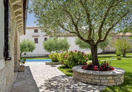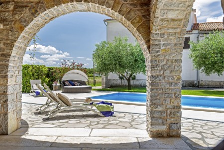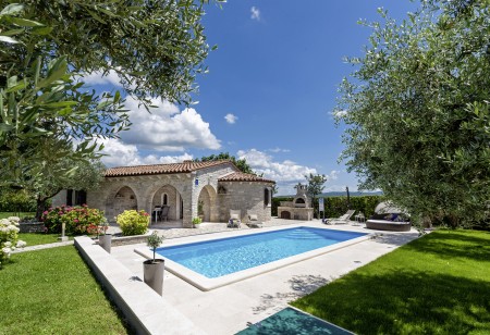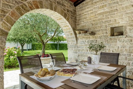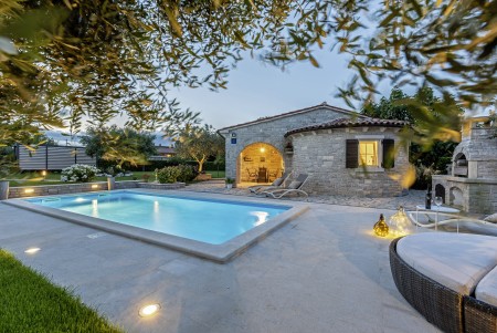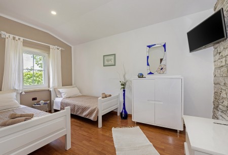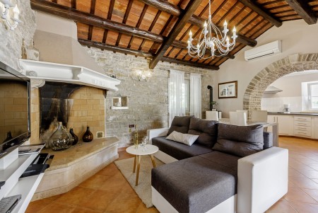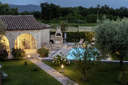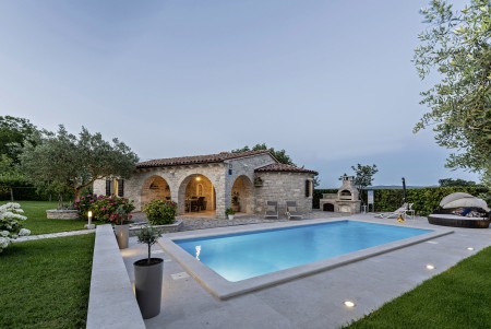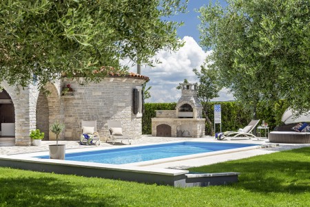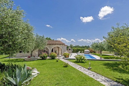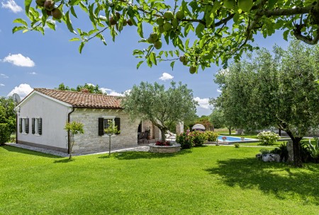 Ova kamena kućica je napravljena po zamisli vlasnika koji je sudjelovao u njezinoj gradnji. Nalazi se u selu Frkeči nedaleko Barbana. Vaši domaćini žive na istoj parceli na udaljenosti od ca. 50 m. Gradić Barban je poznat po manifestaciji „Trka na prstenac“ koja se održava svake godine predzadnji vikend u kolovozu. Vaši domaćini će Vam vrlo rado, ako to želite, pokazati okolicu i dati savjete za izlete. Osim toga, kod njih možete kupiti svježa jaja, povrće iz vrta i domaće vino i rakiju. Za osvježenje tokom ljetnih vrućina tu je i bazen (6 x 4 m).