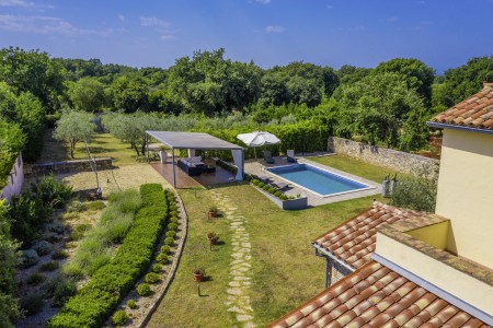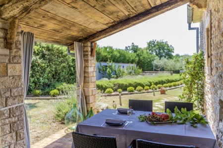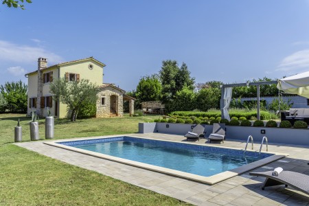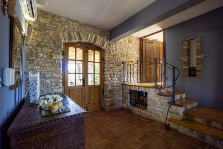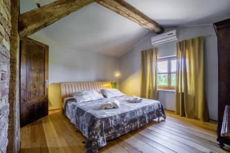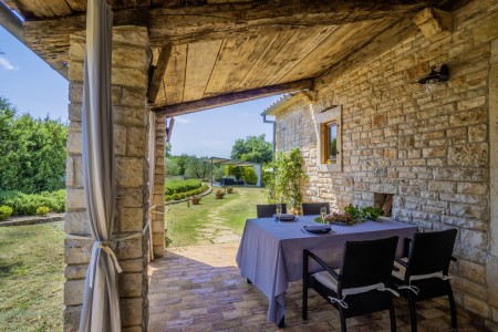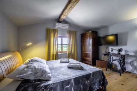 Mnoge kuće koje imamo u programu su renovirane starije kuće, ali ova je novo sagrađena. Vlasnik je na velikoj parceli od 3000 m² u Muntiću dao sagraditi prekrasnu novu kuću. Kod gradnje je pazio na to da unese što više tradicionalnih, istarskih detalja. No, nije pratio u potpunosti tradicionalnu gradnju, već je htio kuću prilagoditi modernom čovjeku. Njegov cilj je bio da gosti „u kući osjete kako Istra diše“. Moramo priznati da mu je to i uspjelo.