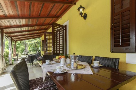 U blizini male luke Plomin Luka, na istočnoj obali poluotoka Istre, očekuje Vas kuća Jolanda na mirnoj lokaciji. Plaža "Copacabana" s beach barom i restoranom udaljena je samo 1 km od kuće. Aktivni gosti ovdje će pronaći idealne uvjete za duge šetnje i biciklističke ture kroz jedinstveno lijep krajolik. Oni koji se žele samo opustiti, također su na pravom mjestu. Kao mogućnosti za izlete nude se obližnji gradovi Plomin (1 km) i Labin (11 km), a do Opatije (35 km) također nije daleko automobilom. U obližnjem mjestu Brestova nalazi se trajektna linija prema otoku Cresu – raju za ljubitelje prirode.