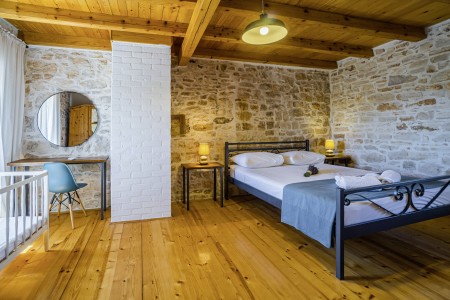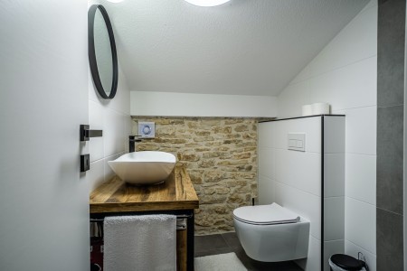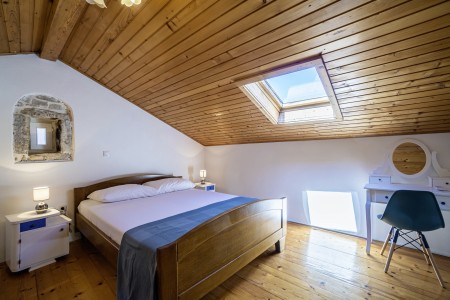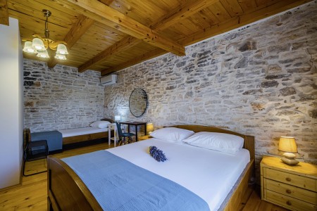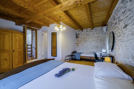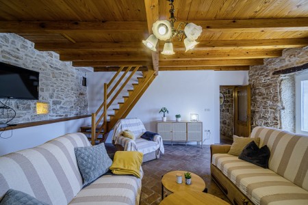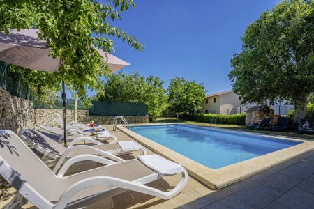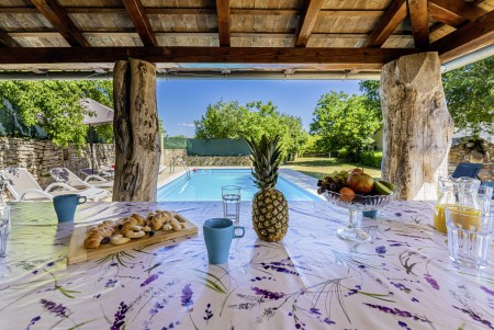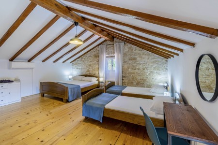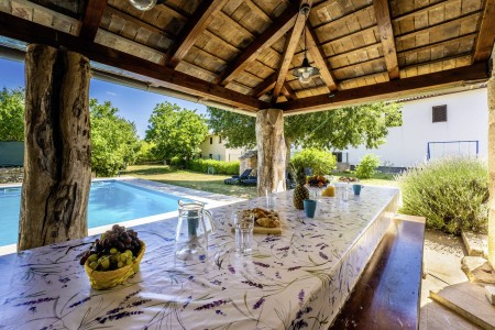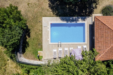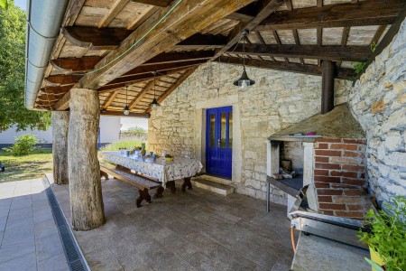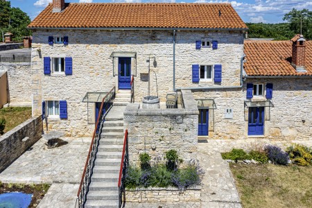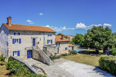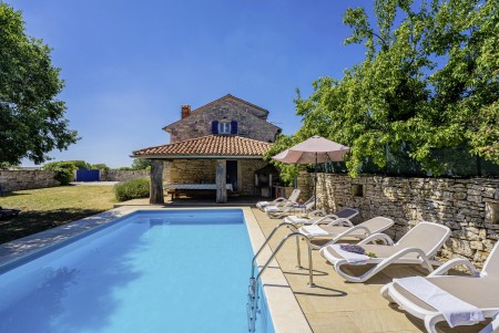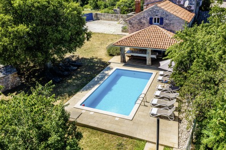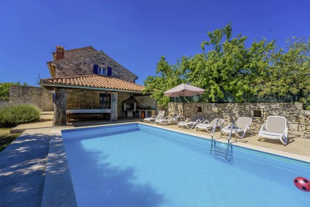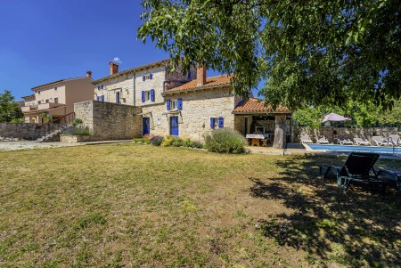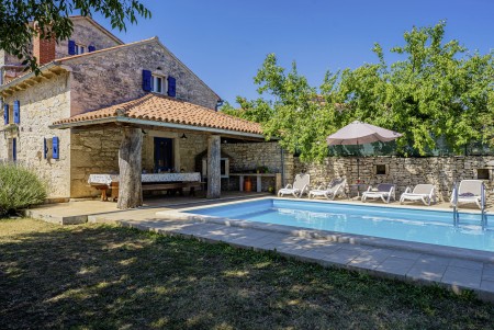 Ova samostojeća kamena kuća okružena je velikim dvorištem, ima natkrivenu terasu, a i položaj je savršen za miran odmor s obitelji i/ili prijateljima u centralnoj Istri. Sobe su prostrane i rustikalno namještene, a kuća ima dovoljno prostora za do 15 osoba. U ograđenom dvorištu je i privatni bazen (7 x 4 m) okružen terasom i ležaljkama. Domaćini žive u susjednom selu Bibići te Vam stoje na raspolaganju ako Vam nešto treba. Oni se bave poljoprivredom. Osim maslinovog ulja, Mario i Dina proizvode i istarski pršut kojeg jednostavno morate probati. Osim toga, kod njih možete kupiti i svježa jaja i sezonsko povrće.