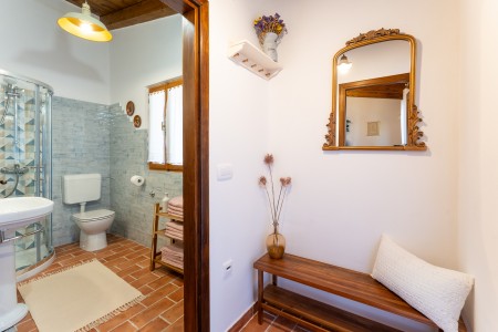 Kuća za 6 osoba: ca. 130 m², podijeljenih u dva dijela koji se iznajmljuju isključivo kao jedna cjelina. Veća kuća površine oko 100 m² raspodijeljena je na dva kata. U prizemlju se nalazi klimatizirana kuhinja s blagovaonicom i impresivnim otvorenim kaminom, dnevni boravak s izlazom u dvorište te kupaonica (tuš/WC). Na prvom katu smještene su dvije dvokrevetne sobe i jedna kupaonica (tuš/WC). Prvi kat također je opremljen klima uređajem. Manja kućica površine oko 30 m² sastoji se od malog dnevnog prostora s trosjedom i foteljom te izlazom u dvorište, klimatizirane spavaće sobe s bračnim krevetom i kupaonice (tuš/WC). U nastavku kućice nalazi se natkrivena terasa, savršeno mjesto za opuštanje.