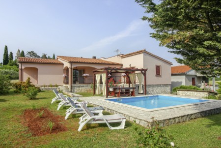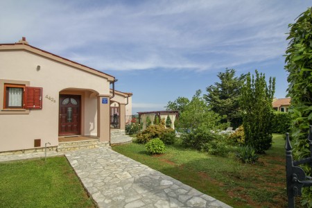 Kuća za 4-6 osoba: Kuća površine ca. 150 m². Sastoji se od kuhinje sa spremištem, klimatiziranog dnevnog boravka, blagovaone s kaminom. Dvije dvokrevetne sobe, jedna kupaona tuš/WC, jedna kupaona kada/WC. Velika terasa (ca. 30 m²) prema bazenu. U dnevnom boravku kauč na razvlačenje (120 x 180 cm) za dvoje manje djece.