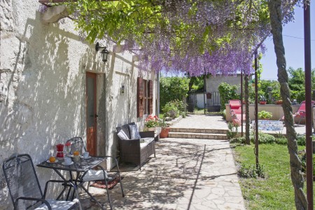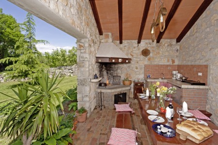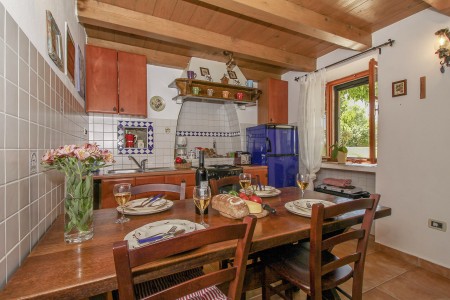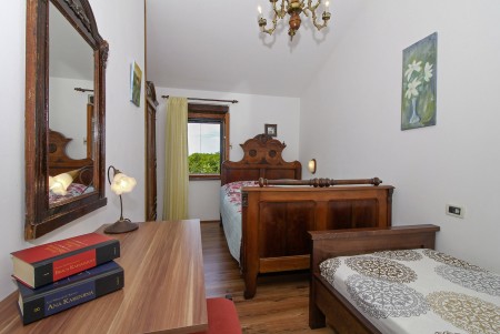 Samostojeća, kompletno renovirana kamena kuća nalazi se na velikoj parceli veličine 5000 m² u naselju Gora Glušići, usred Parka prirode Tihovinje-Goli. Dok je najbliža susjedna kuća na 200 m udaljenosti ovdje ima dovoljno mjesta za nestašne igre djece ili za odmor u hladu stabala. Tko posebno drži do svoje privatnosti ovdje je na pravom mjestu. U susjedstvu se nalaze dva seoska imanja s različitim domaćim životinjama, a jedni i proizvode sir. Vaši domaćini proizvode vino i rakiju. Na samo 2 km od kuće nalazi se najviši vrh s kojega se može uživati u prekrasnom pogledu na cijelu istočnu obalu Istre kao i na otoke Kvarnera.