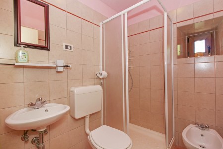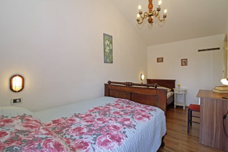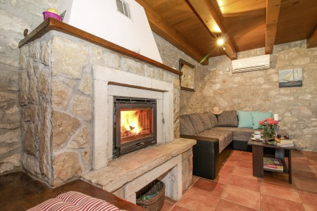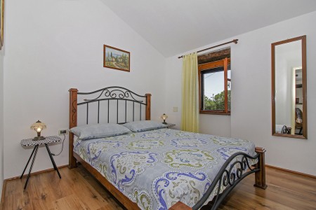 Kuća za 4 osoba: Kuća površine ca. 80 m² podijeljena na dva kata. U prizemlju otvorena kuhinja s blagovaonom i prostorom za sjedenje, u produžetku se nalazi sjedeća garnitura, otvoreni kamin, klima uređaj i kupaona (kada/WC). Na gornjem katu je klima uređaj u hodniku, spavaća soba s bračnim krevetom, spavaća soba s dva kreveta za jednu osobu i jedna kupaona (tuš/WC). Uz kuću se nalazi natkriveni prostor s kaminom za roštilj i ljetna kuhinja sa štednjakom.