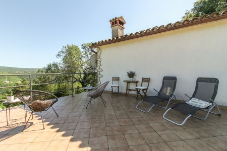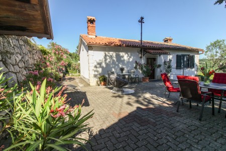 Ova kuća je okružena jedinstvenim krajolikom, brdašcima, zelenim livadama i vinogradima. Samo 8 km udaljena od plaža na istočnoj obali Istre. Vaši domaćini se bave pčelarstvom i proizvodnjom meda. Osim odličnog klasičnog meda i meda s orasima i voćem, proizvode i jako ukusnu slatku medovaču. Kada stignete u kuću svakako ćete ju morati probati.