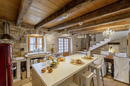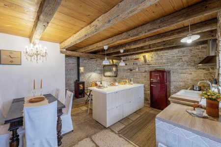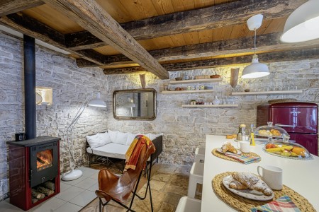 Ova prekrasna, tradicionalna kuća sagrađena od prirodnog kamena se nalazi u selu Kranjčići – malo selo u središnjoj Istri koje je još uvijek neotkriveno. U ovom selu, u kojem nema mnogo kuća, ni mnogo stanovnika, a niti mnogo ulica, na kraju jedne male uličice ćete pronaći kuću Una. Ugodno i sa stilom uređena, ova kuća ima posebnu toplinu. Mnogi umjetnički detalji ju čine posebnom i daju joj dušu. Ovdje se odmah osjećate kao kod kuće. Ispred i iza kuće se nalazi dvorište koje je ograđeno starim suhozidom. Tu je i natkrivena terasa na kojoj možete provesti divne večeri.