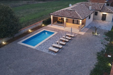Ova prizemna, udobno namještena kuća s tri klimatizirane spavaće sobe i potpuno ograđenim i uređenim dvorištem (950 m²) s bazenom (7,5 x 4,5 m) nalazi se u malom selu Kapelica, koje pripada općini Labin. Sunčana terasa s ležaljkama idealna je za potpuno uživanje u toplim danima i ljetnim večerima. Vila je savršena polazna točka za istraživanje ljepota Istre – od bajkovitog krajolika oko imanja do živopisnih mjesta na obali. Poznati gradovi poput Pule, Rovinja i Opatije nalaze se u krugu od maksimalno 60 km i lako su dostupni automobilom. Popularne plaže u Rapcu udaljene su otprilike 5 km. Najbolju pizzeriju u okolici, Rumore, možete pronaći u starogradskoj jezgri Labina (2 km). Najbliža trgovina nalazi se na udaljenosti od 500 m.