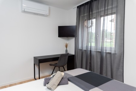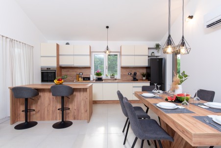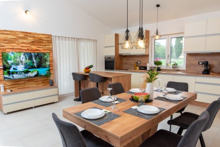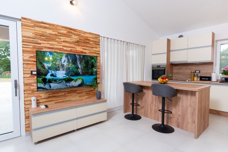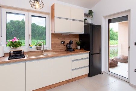 Ova prizemna, udobno namještena kuća s tri klimatizirane spavaće sobe i potpuno ograđenim i uređenim dvorištem (950 m²) s montažnim bazenom (5,5 x 3 m) nalazi se u malom selu Kapelica, koje pripada općini Labin. Sunčana terasa s ležaljkama idealna je za potpuno uživanje u toplim danima i ljetnim večerima. Vila je savršena polazna točka za istraživanje ljepota Istre – od bajkovitog krajolika oko imanja do živopisnih mjesta na obali. Poznati gradovi poput Pule, Rovinja i Opatije nalaze se u krugu od maksimalno 60 km i lako su dostupni automobilom. Popularne plaže u Rapcu udaljene su otprilike 5 km. Najbolju pizzeriju u okolici, Rumore, možete pronaći u starogradskoj jezgri Labina (2 km). Najbliža trgovina nalazi se na udaljenosti od 500 m.