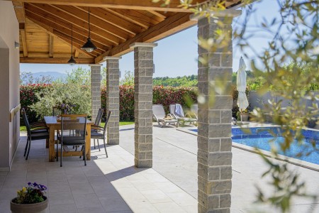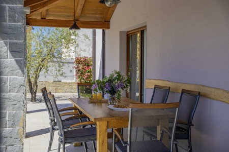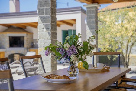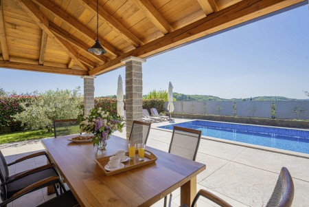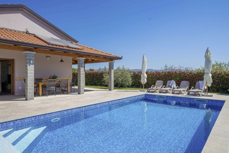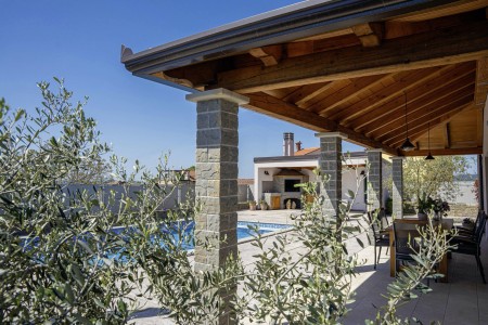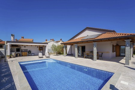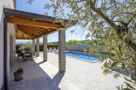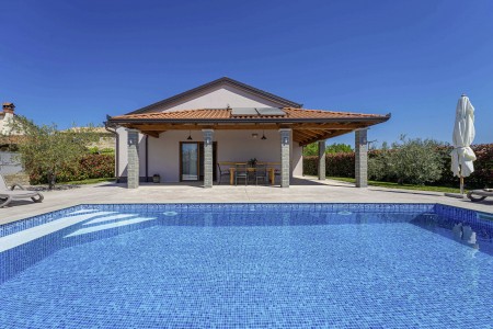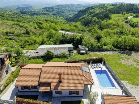 Otkrijte savršeno mjesto za opuštanje u Svetom Donatu, malom selu smještenom u zadivljujućem krajoliku u blizini povijesnog grada Buzeta. Ova prizemna, moderno uređena villa pruža ne samo udoban smještaj, već i oazu mira i privatnosti. Idealna za do šest osoba, kuća je savršena za obitelji koje žele doživjeti nezaboravan odmor u hrvatskom krajoliku. Privatni bazen (4 x 8 m) i sunčana terasa pružaju ekskluzivno mjesto za opuštanje, dok natkrivena terasa s roštiljem poziva na ugodne večeri. Bilo da se želite sunčati, plivati ili jednostavno uživati u tišini, ovdje ćete pronaći idealno mjesto za to. Villa ima tri stilski uređene spavaće sobe i tri moderne kupaonice, koje nude idealan prostor za opuštanje nakon dana prepunog istraživanja. Prostrani dnevni boravak i blagovaonica s potpuno opremljenom kuhinjom idealni su za zajedničke obroke i druženja. Samo 7 km udaljen je Buzet, gdje možete pronaći trgovine i restorane. Za još bogatiji izbor, posjetite 18 km udaljeni Motovun, poznat po svojoj starogradskoj jezgri, dodatnim trgovinama, restoranima i kafićima. Ova villa pruža savršenu polaznu točku za istraživanje ljepota i bogatstva istarskog krajolika, od skrivenih dragulja unutrašnjosti do živahnih obalnih gradova, do kojih je lako doći automobilom.
