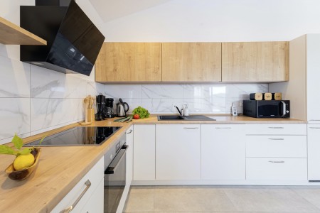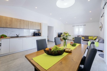 Ostalo: Besplatan WiFi internet. Natkrivena ljetna kuhinja s dva roštilja, sudoperom i prostorom za sjedenje. Stolni tenis u dvorištu. Besplatno privatno parkiralište za 3 automobila.