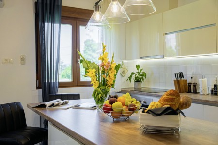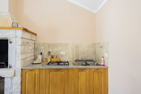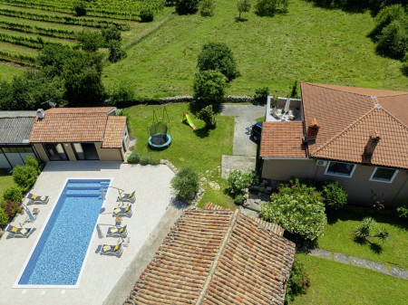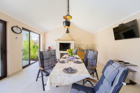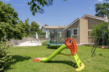 Ostalo: Besplatan WiFi internet. Centralno grijanje. Mali gosti mogu uživati na igralištu s ljuljačkom, toboganom i trampolinom. Kućica za bazen opremljena je ljetnom kuhinjom koja uključuje plinski štednjak, sudoper, roštilj, hladnjak, blagovaonski stol, TV i WC. Besplatan privatni parking na parceli. Smještaj nije namijenjen grupama mladih.