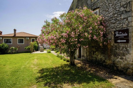 Samostojeća kuća pod nazivom Villa Mendula, smještena je u Čambarelićima, malom i mirnom selu koje pripada općini Kršan. Okolica je poznata po prekrasnom krajoliku s prostranim poljima, livadama i šumama, čineći je idealnim mjestom za vrlo ugodan i miran odmor. Uz privatni bazen (4 x 10 m) s terasom za sunčanje, ležaljkama i suncobranima, vanjski prostor nudi poseban dodatak - kućicu za bazen s potpuno opremljenom ljetnom kuhinjom, koja uključuje roštilj, blagovaonicu i TV, te velike klizne staklene stijene koje se mogu otvoriti prema bazenu. Okruženje u kojem se villa nalazi idealno je za pješačenje i otkrivanje novih vidika, a pogotovo onima koji se odvaže popeti se na najviši vrh, Učku. Oni će biti nagrađeni pogledom od kojega zastaje dah! Oni koji ipak najviše vole morsku obalu neće biti uskraćeni, jer je najbliža plaža imenom „Copacabana“ koja se nalazi ispod gradića Plomin udaljena 10 km. Poznatije plaže u Rapcu nalaze se na udaljenosti od oko 20 km. Najbolju pizzu u okolici možete pronaći u Plominu (ca. 10 km). Najbliža trgovina udaljena je samo 1,5 km od kuće.