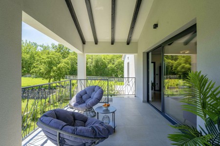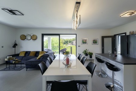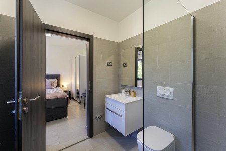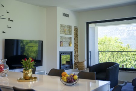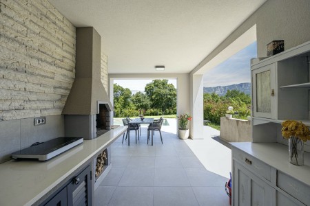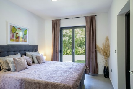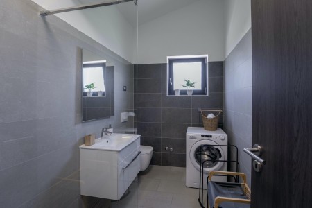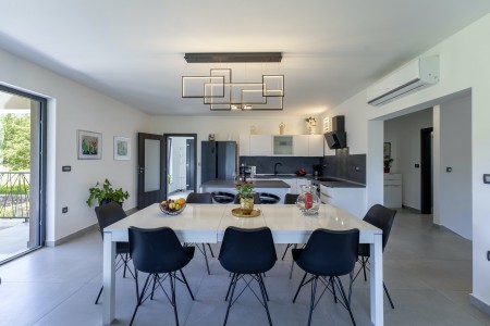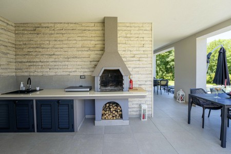 Ova moderna samostojeća villa smještena je u Blaškovićima, vrlo mirnom selu koje pripada općini Kršan. Okružena zelenilom i prekrasnim krajolikom s prostranim poljima, livadama i šumama, villa pruža savršeno mjesto za miran odmor. Osim privatnog bazena (4 x 8 m) sa sunčanom terasom i ležaljkama, uređeno dvorište nudi i potpuno opremljenu ljetnu kuhinju s roštiljem i natkrivenim prostorom za sjedenje na otvorenom. Najmlađi gosti mogu uživati na malom igralištu s ljuljačkom i toboganom. Kvalitetno uređena kuća, osim svih potrebnih pogodnosti, nudi i predivan pogled na planinu Učku i njen najviši vrh Vojak. Okruženje u kojem se villa nalazi idealno je za pješačenje i otkrivanje novih vidika, a pogotovo onima koji se odvaže popeti se na najviši vrh, Učku. Oni će biti nagrađeni pogledom od kojega zastaje dah! Oni koji ipak najviše vole morsku obalu neće biti uskraćeni, jer je najbliža plaža imenom „Copacabana“ koja se nalazi ispod gradića Plomin udaljena samo 7 km. Poznatije plaže u Rapcu nalaze se na udaljenosti od oko 20 km. Restoran i trgovina nalaze se u Kršanu (2 km). Najbolju pizzu u okolici možete pronaći u starogradskoj jezgri Labina (12 km) – pizzerija „Rumore“.