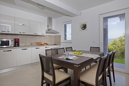 Moderna samostojeća villa sa četiri spavaće sobe nalazi se na istočnom dijelu Istarskog poluotoka, samo 1 km udaljena od obale i plaže. Iz dvorišta se može gledati more, kao i stari grad Labin na obližnjem brdu koje nije daleko.