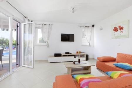 Kod planiranja gradnje ove ville pazilo se da ona bude komforna i da odgovara zahtjevima naših gostiju. Osim ugodnog i lijepo namještenog interijera, oko kuće je lijep i njegovan vrt sa bazenom (8 x 4 m, dubine 1,50 m) i sunčalištem s ležaljkama oko bazena.