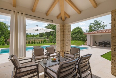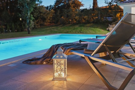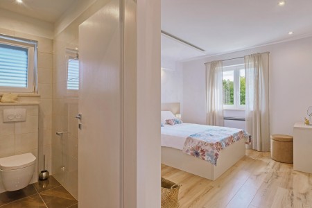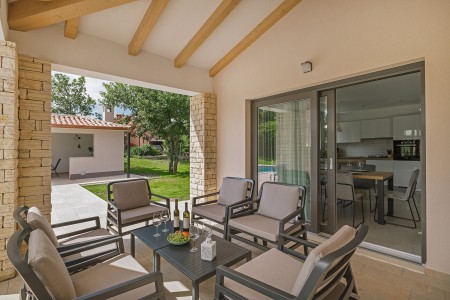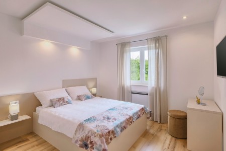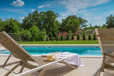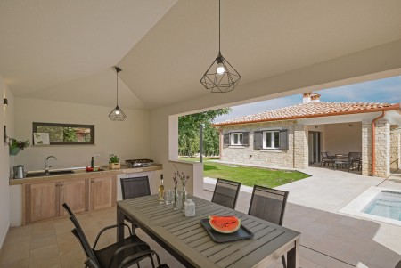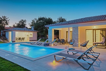 Nova, komforno namještena kuća nalazi se u malom selu Breg, u blizini gradića Labina, a iznad istočne obale Istarskog poluotoka gdje dominira turistički gradić Rabac. Smjestila se u slijepoj ulici, idilično okružena čistom prirodom, šumarkom i livadama. U dvorištu veličine 1400 m² i koje se izvana ne vidi, gosti će sigurno naći neprocjenjiv mir, privatnost i odmor za dušu i tijelo. Tu je i bazen (7 x 10 m) sa sunčalištem i ležaljkama, kao i natkrivena terasa sa roštiljem i mjestom za sjedenje. Mnoge šljunčane plaže idealne za obitelji s djecom nalaze se u Rabcu (ca. 5 km), a razne prirodne i divlje plaže istočne obale dostupne su autom za samo nekoliko minuta. Mogućnosti za kupovinu, restorani i sve potrebno za svakodnevnicu naći ćete u obližnjem Labinu na ca. 5 km, čiji je stari grad također vrijedan posjeta.