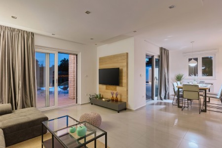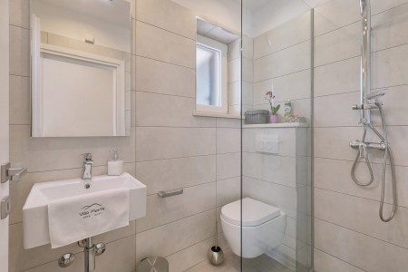 Ostalo: besplatan WiFi internet. Vani su vanjski tuš i dva suncobrana, mreža za badminton, stol za stolni tenis, stolni nogomet. Vlasnici kuće su prvi susjedi, žive na ca. 50 m od kuće, a uzgajaju sezonsko povrće i različito voće što će rado podijeliti sa Vama, a ponuditi će vam i vinu, rakiju i maslinovo ulje.