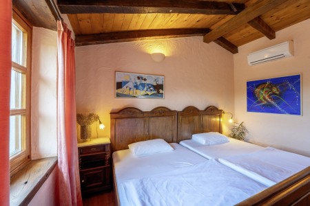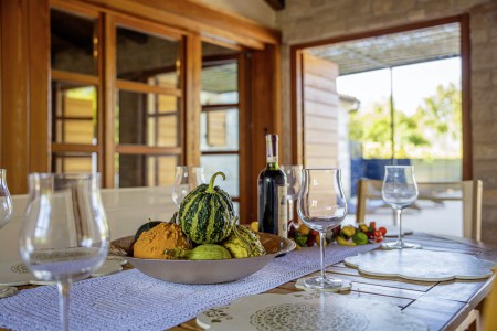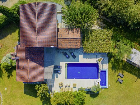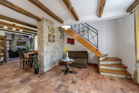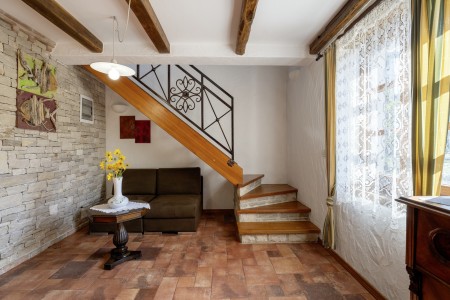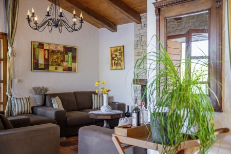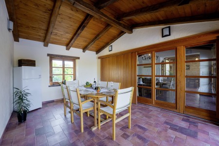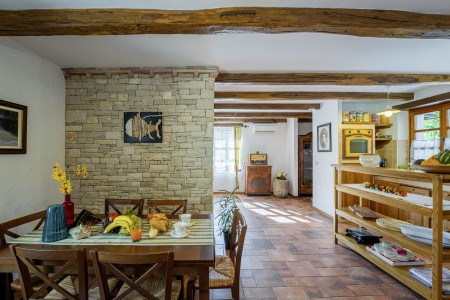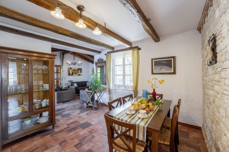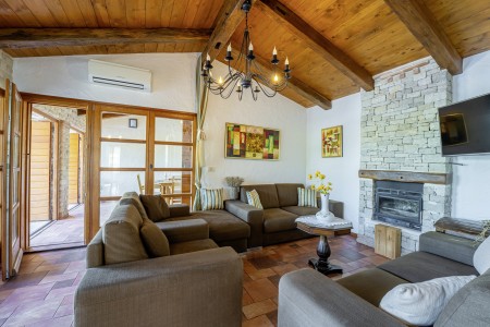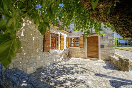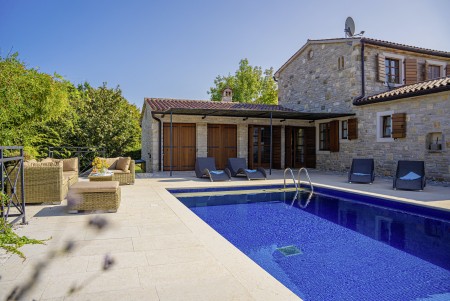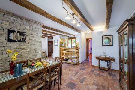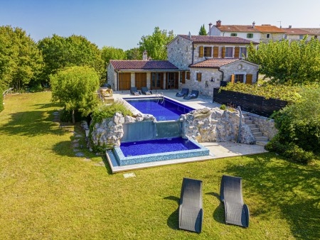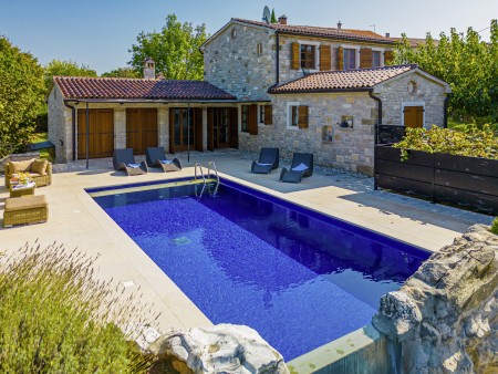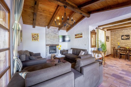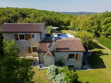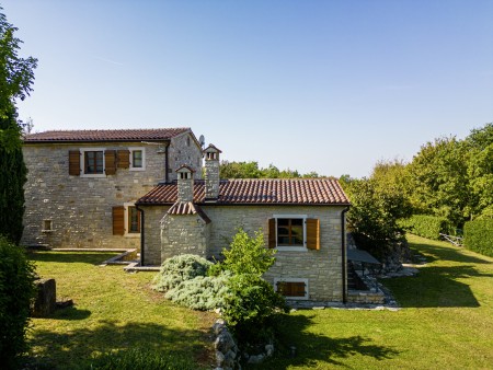 Ova udobna kamena villa s tri spavaće sobe i tri kupaonice smještena je u Kubertonu, malom selu koje pripada općini Grožnjan. Okružena lijepim krajolikom, villa sa svojim skrivenim vrtom (1200 m²) i privatnim bazenom (9 x 4 m) pruža oazu mira daleko od turističke vreve, dok su obalni gradovi poput Novigrada i Poreča, sa svojim brojnim plažama, udaljeni oko 20-30 minuta vožnje automobilom. Trgovina i restoran nalaze se u Marušićima (ca. 5 km), a pitoreskni gradić Grožnjan, poznat po brojnim znamenitostima, nalazi se na oko 8 km od ville. Mnogi glazbenici i slikari iz cijele Europe poznaju Grožnjan, jer se ovdje održavaju glazbeni tečajevi i redovito se priređuju koncerti. Također, ovdje ćete pronaći 20 galerija poznatih umjetnika i školu za keramiku.
