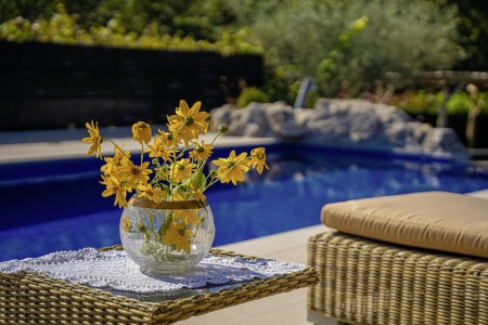 Ostalo: Besplatan WiFi internet. Besplatan privatni parking na parceli. Udobne ležaljke za sunčanje i zelena pergola s lounge prostorom uz bazen. Vanjski tuš u vrtu. Dodatan adut ove ville je preljevni bazen koji se ulijeva u manji bazen (2 x 4 m) u vrtu, što čini ovu villu idealnom za obitelj s djecom.