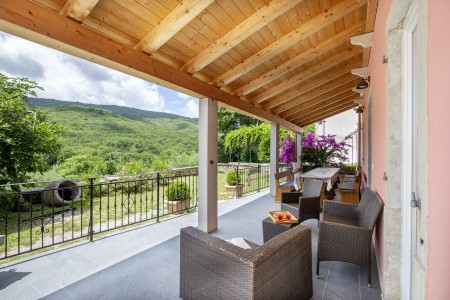 Na slikovitom obronku sa prekrasnim pogledom na more i otok Cres u daljini, ugodno uređena villa Oliva Vilea čeka svoje goste. Ova samostojeća kuća s privatnim bazenom nalazi se u mjestu Sveta Marina i udaljena je samo 80 m od plaže. Sveta Marina je malo primorsko mjesto na istočnoj obali Istre i pruža mogućnosti mirnog ali i aktivnog odmora. Osim prekrasnih uvala i plaža koje pozivaju na brčkanje u plićaku ili ronjenje u dubinama, ovdje su i zanimljivi krajolici koji pozivaju na šetnje i pješačke ture. Restoran i trgovina se nalaze u blizini, lako su dostupni pješice, dok u 12 km udaljenom Labinu možete pronaći sve što Vam je potrebno za svakodnevne potrebe, kao i posjetiti stari grad te uživati u najboljoj pizzi u ovom kraju– pizzeriji “Rumore”. Kuća i cijela okućnica s bazenom stoje samo Vama na raspolaganju. Najmlađi gosti mogu uživati na igralištu s ljuljačkom, toboganom i penjalicom.