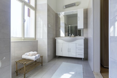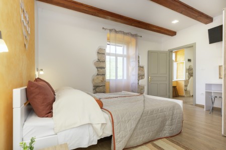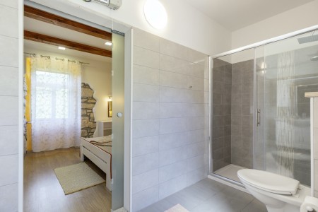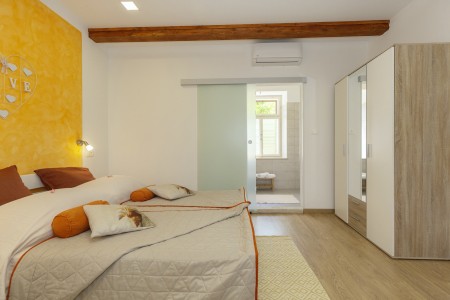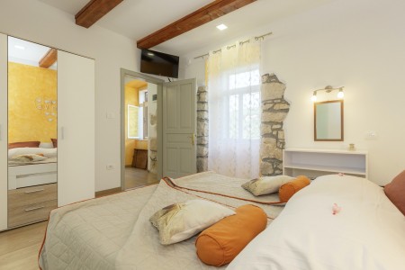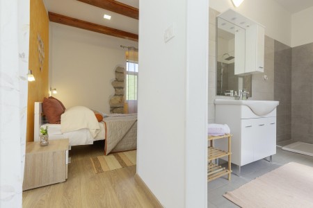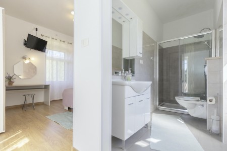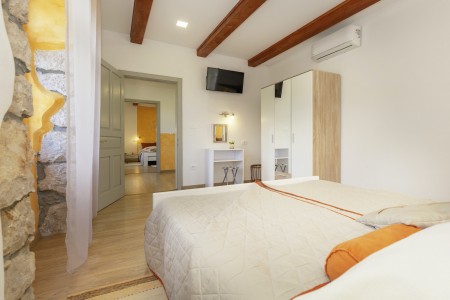 Kuća za 8 osoba: ca. 180 m², raspoređenih na tri etaže. U prizemlju se nalazi potpuno opremljena kuhinja s blagovaonicom, dnevni boravak s udobnim kaučem i klima uređajem te WC. Dnevni boravak ima izlaz prema bazenu. Na prvom katu nalaze se dvije spavaće sobe s bračnim krevetima, klimom i TV-om te dvije kupaonice (tuš/WC). Također je na raspolaganju velika terasa s ležaljkama za sunčanje. Na drugom katu nalaze se još dvije spavaće sobe s bračnim krevetima, klimom i TV-om, kao i dvije kupaonice (tuš/WC). Osim toga, tu je i veliki balkon s pogledom na more.