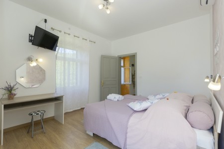 Ostalo: Besplatan WiFi internet. Vanjska kuhinja s roštiljem, sudoperom i natkrivenim prostorom za blagovanje na otvorenom. Ležaljke za sunčanje, vanjski tuš i djelomično natkriveni bazen (4 x 6 m) s natkrivenom terasom. Stolni tenis u dvorištu. Besplatno privatno parkiralište za 4 automobila na parceli.