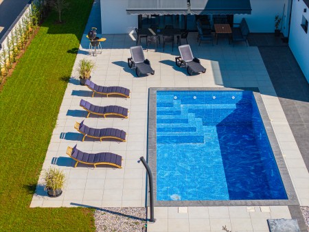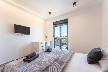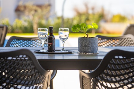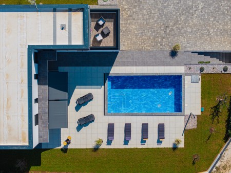 Ostalo: Besplatan WiFi internet. Parking za do 3 automobila unutar ograđene parcele. U dvorištu se nalazi badminton mreža, dok bazen sadrži mrežu za odbojku u vodi, što gostima pruža dodatnu zabavu. Smještaj nije namijenjen grupama mladih.