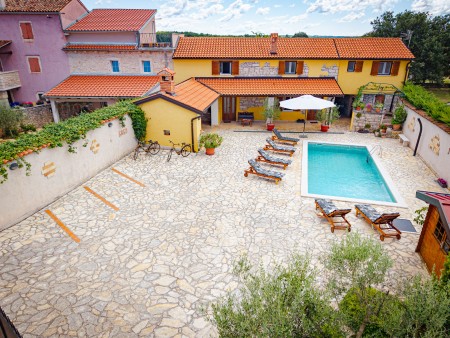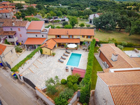 Ova kamena kuća se nalazi u Baratu – malom mjestu iznad Limskog kanala. Ovdje možete uživati u miru i privatnosti, a do živopisnih mjesta poput Poreča, Rovinja i Vrsara se dođe vrlo brzo autom. Kuća je lijepo uređena i dvorište je ograđeno kamenim zidom. Kuća, dvorište i bazen (4 x 8 m) stoje samo Vama na raspolaganju. Domaćini Mario i Rina žive na svojoj bio-farmi koja se nalazi u blizini. Po dogovoru možete posjetiti farmu s brojnim sretnim životinjama te kupiti svježa jaja.
