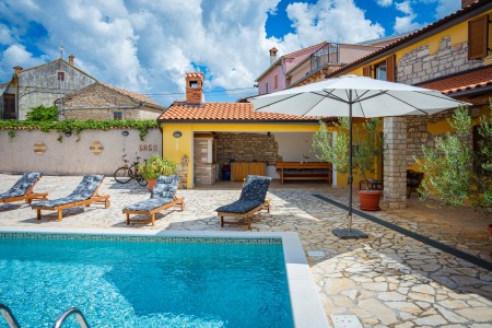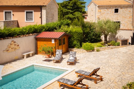 Ugodno uređena kamena kuća s tri spavaće sobe, privatnim bazenom, terasom za sunčanje i natkrivenim mjestom za roštilj