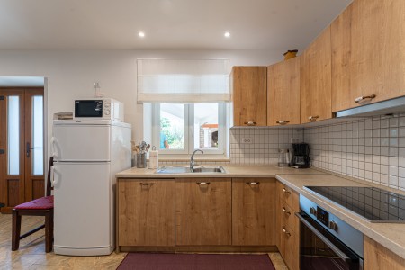 Ostalo: besplatan WiFi Internet. Vanjski tuš, ležaljke i suncobran na bazenu. Natkrivena terasa (ca. 30 m²) na kojoj je roštilj i stol sa klupama. Iza kuće je mali travnik za sunčanje ili igranje. Pet bicikala za odrasle dostupno je gostima za besplatno korištenje.