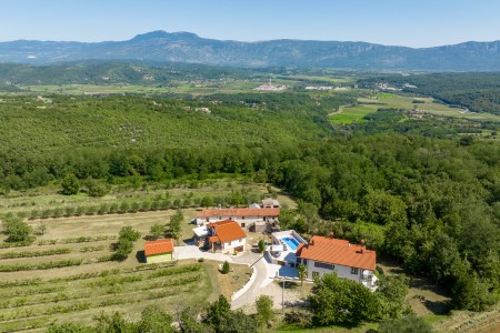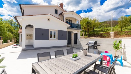 Ova villa nalazi se u Kukurini, malom mjestu nedaleko od povijesnog grada Pićana. Okružena zelenilom i lijepim prirodnim krajolikom, ovdje se može provesti ugodan i miran odmor. Villa se nalazi na potpuno ograđenoj parceli. Osim privatnog bazena (3,5 x 8 m) s ležaljkama i vanjskim tušem, tu je i dječje igralište s toboganom, ljuljačkom i penjalicom, kao i stolni nogomet. Interijer kuće je stilski uređen i nudi prostor za do 8 osoba. Okolica je idealna za duge šetnje i planinarenja kroz zelenu prirodu, a oni koji se popnu na planinu Učku bit će nagrađeni nevjerojatnim panoramskim pogledom na Istru. Oni koji ipak više vole morsku obalu, neće biti uskraćeni, jer je najbliža plaža imenom „Copacabana“, koja se nalazi ispod gradića Plomin, udaljena 15-20 minuta vožnje autom.