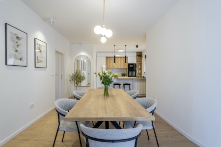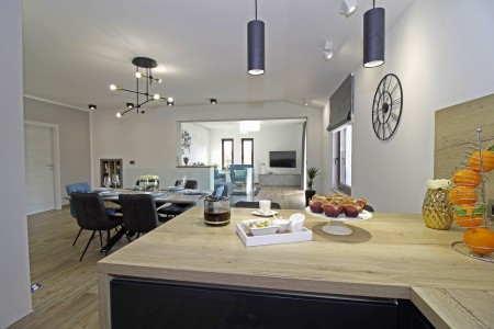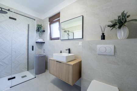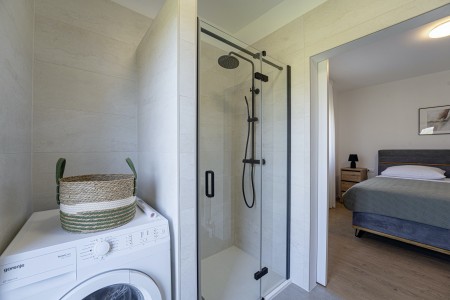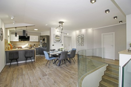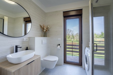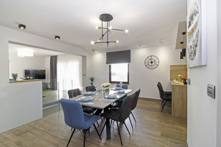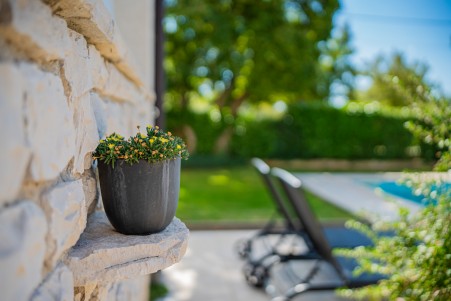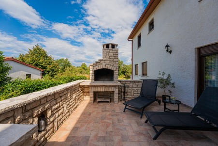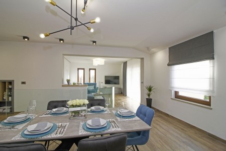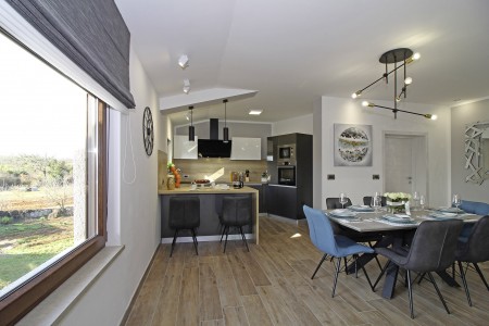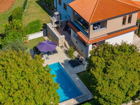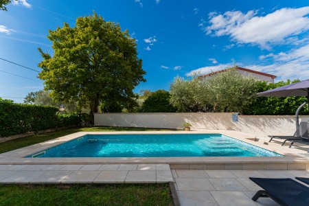 Ova nova i moderna dvokatnica se nalazi u malom selu Pinezići između Vodnjana i istočne obale Istre. Kuća je okružena velikim dvorištem (1900 m²) u kojem ima dovoljno mjesta za odmor. Ovdje možete biti sigurni u privatnost te u potpunosti uživati u miru i privatnom bazenu (7,5 x 3,5 m).