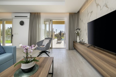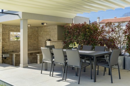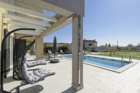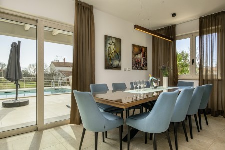 Samostojeća villa smještena je u Krnici, malom selu u blizini istočne obale Istre. Udaljena samo 3 km od najbliže plaže, u mirnom zelenom okruženju, villa Valentina pravi je izbor za opuštajući odmor u privatnoj atmosferi. Uz ukusno i kvalitetno uređeni interijer s četiri udobne spavaće sobe, očekuje Vas njegovan vanjski prostor s privatnim bazenom (8 x 4 m), sunčalištem, ležaljkama, vanjskom kuhinjom s roštiljem i mjestom za sjedenje. Centar malog mjesta, Krnica, nudi restoran i trgovinu, a do njega se može doći pješice za nekoliko minuta. Ovo mjesto je savršeno za opuštanje, ali i za ljubitelje aktivnog odmora u prirodi, s brojnim pješačkim i skrivenim stazama kroz prekrasan krajolik Istre.