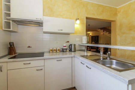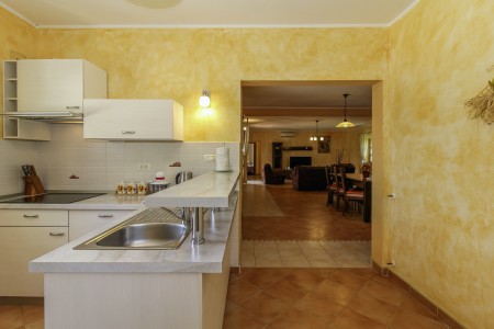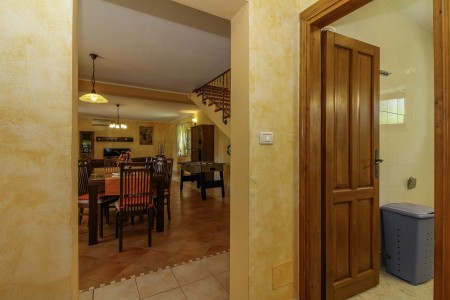 Dobrodošli u našu šarmantnu kamenu villu u Kringi, oazu mira i udobnosti koja je udaljena 22 km od živahnih obalnih gradova Poreča i Vrsara. Ova samostojeća villa, idealna za do 8 osoba, spaja tradicionalni šarm s modernom udobnošću i savršeno je mjesto za opuštajući odmor u Istri. Villa se ističe tradicionalno uređenim interijerom koji stvara toplu i ugodnu atmosferu. Tri prostrane spavaće sobe i četiri dobro opremljene kupaonice osiguravaju dovoljno prostora i privatnosti za sve goste. Veliki dnevni boravak i blagovaonica idealni su za zajedničke trenutke, dok potpuno opremljena kuhinja sadrži sve što Vam je potrebno za pripremu ukusnih obroka. Na potpuno ograđenoj parceli od 2.000 m² na raspolaganju Vam je privatni bazen (4 x 8 m), sunčana terasa s udobnim ležaljkama, jacuzzi i roštilj – idealno za uživanje u toplim danima i ljetnim večerima. Lokacija ville pruža savršenu ravnotežu između ruralne idile i blizine lokalnih sadržaja. Trgovina je udaljena samo 400 metara, dok se restoran nalazi na udaljenosti od 900 metara. Uživajte u blizini plaža i atrakcija na popularnoj zapadnoj obali poluotoka Istre, dok ćete u Villi Vernier u Kringi pronaći mir i opuštanje.