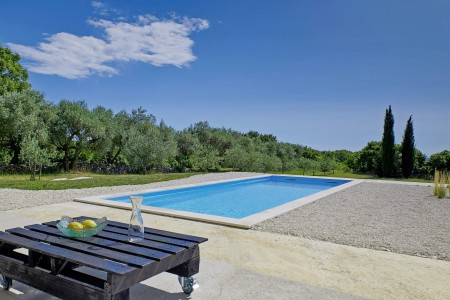 Dizajnerska prizemnica za 4 osobe na velikoj parceli (2000 m²) s maslinikom, livadom i privatnim bazenom